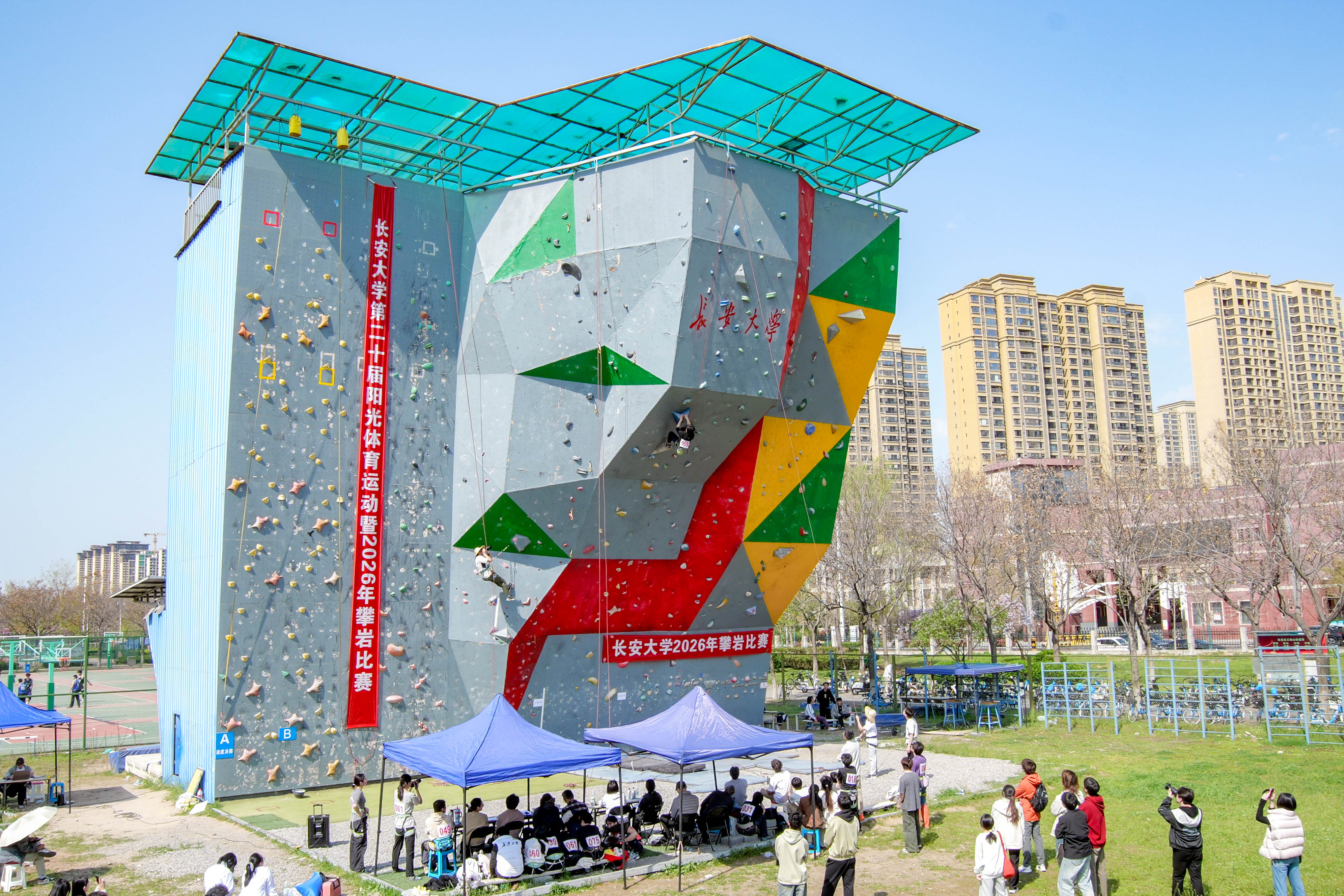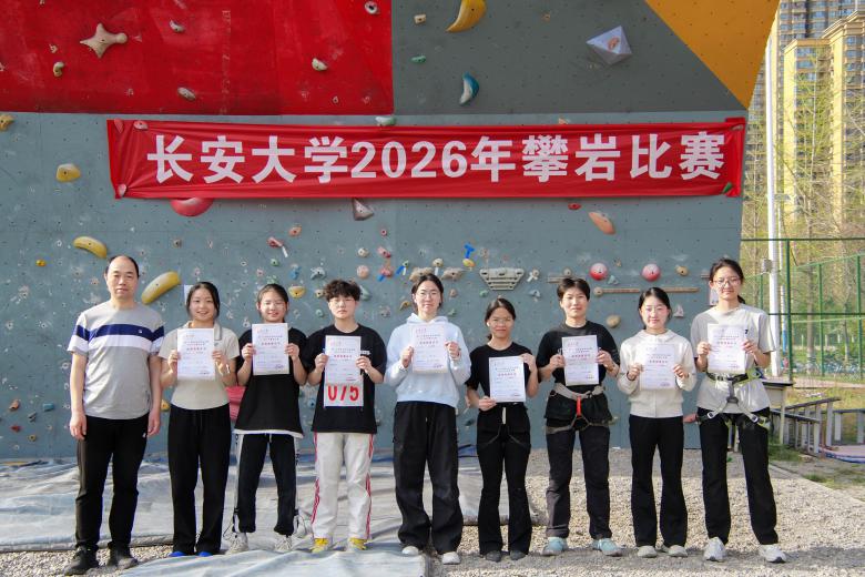 2026年3月28日,为更好地践行“教会、勤练、常赛”的理念,给热爱攀岩运动的学生们提供参赛和展示自我的平台,在陡峭岩壁上同场竞技。由长安大学体育运动委员会主办,体育部(系)、校团委承办的长安大学第二十届阳光体育运动暨2026年攀岩比赛在北校区攀岩场成功举行。裁判员由体育部(系)选派10名教师和部分攀岩队队员、志愿者组成。