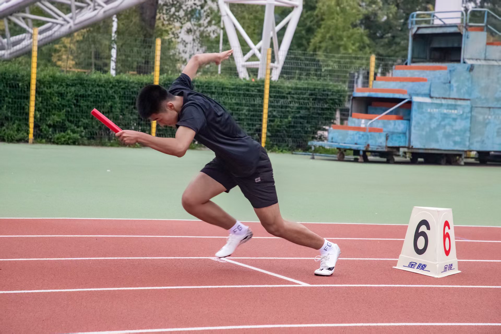 赛场上,运动健儿们全力拼搏。短跑选手如闪电般冲向终点,长跑选手克服体力极限坚持到底,田赛选手在跳高、跳远、铅球等项目里不断挑战自我。接力赛中,各学院队员默契配合,接力棒的传递不仅是速度的衔接,更是团队精神的凝聚。
