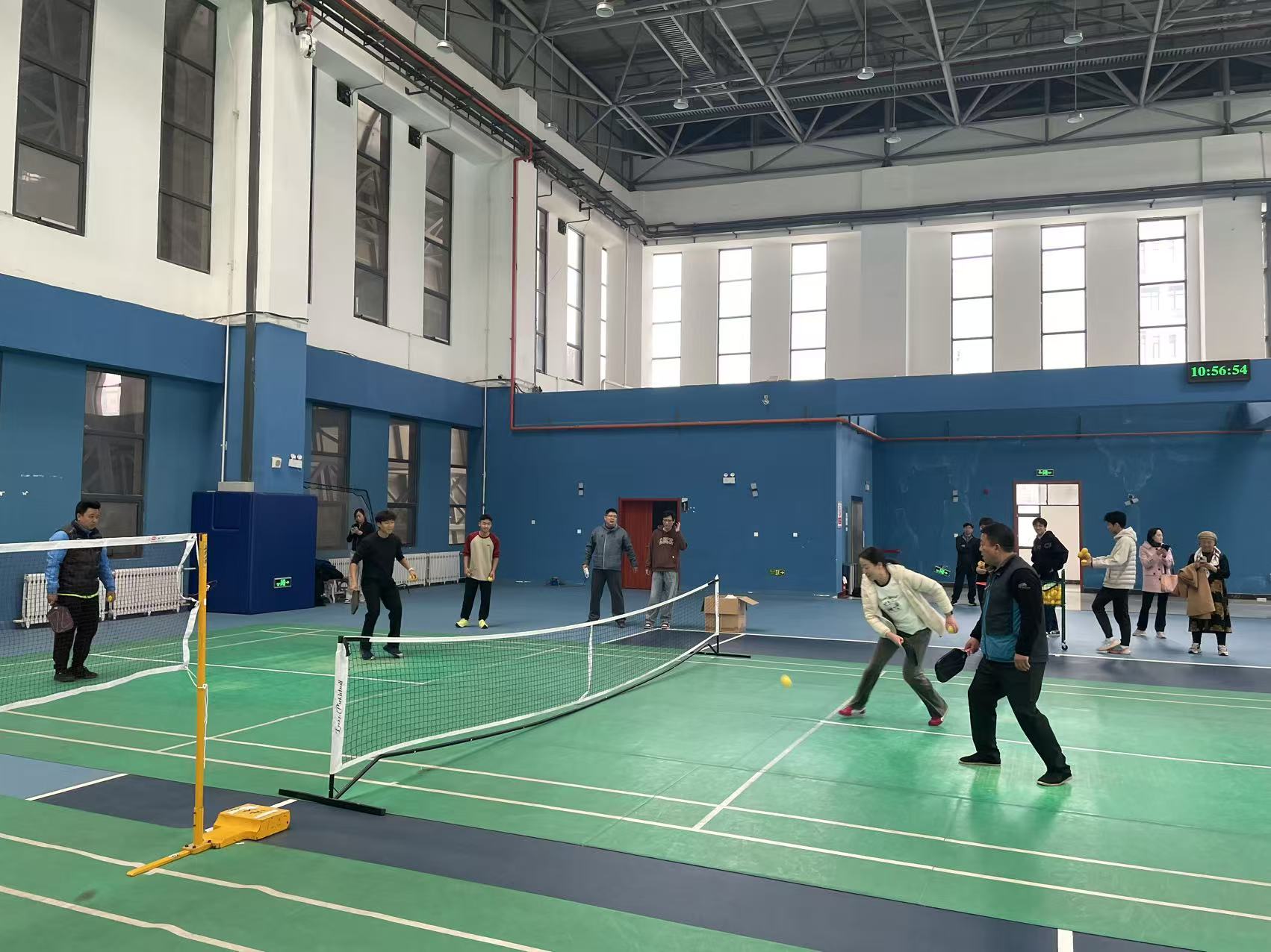 培训考核环节结束后,紧张的氛围瞬间转换为运动的欢快。全体教职工移步球场,投入到新兴运动项目——匹克球的活动中。球场上,老师们挥拍击球,身影矫健,笑声与喝彩声此起彼伏。这项集网球、羽毛球、乒乓球特点于一身的运动,迅速点燃了大家的参与热情,在切磋球技的同时,有效舒缓了工作压力,增进了同事间的友谊。活动最后,工会还为每位参与活动的老师发放了纪念品。