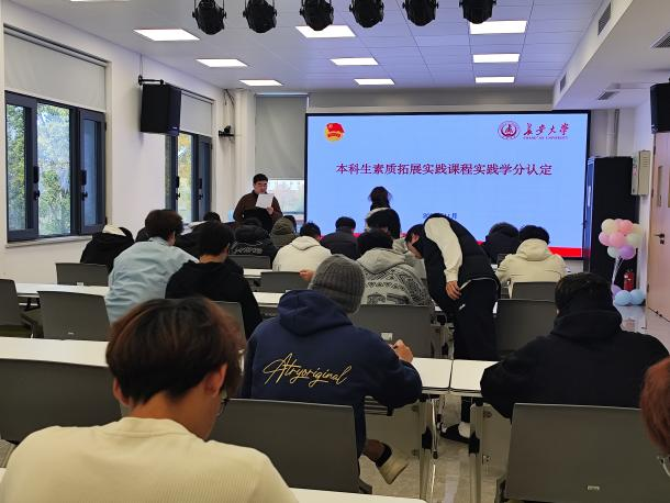 会上,杨建华系统介绍了本科生素质拓展实践课程的认定机制,详细解读了课程涵盖的德育、美育、劳育与创新创业实践的培养要求及实施路径,并明确了相应的考核标准与学分认定办法。杨建华强调,素质拓展实践是本科培养方案的重要组成部分,是提升实践能力的关键环节。他鼓励同学们积极投身第二课堂实践,主动利用校内外资源参与社会实践、志愿服务与创新创业等活动,促进专业知识学习与综合素质拓展的深度融合,在实践中锻炼成长。