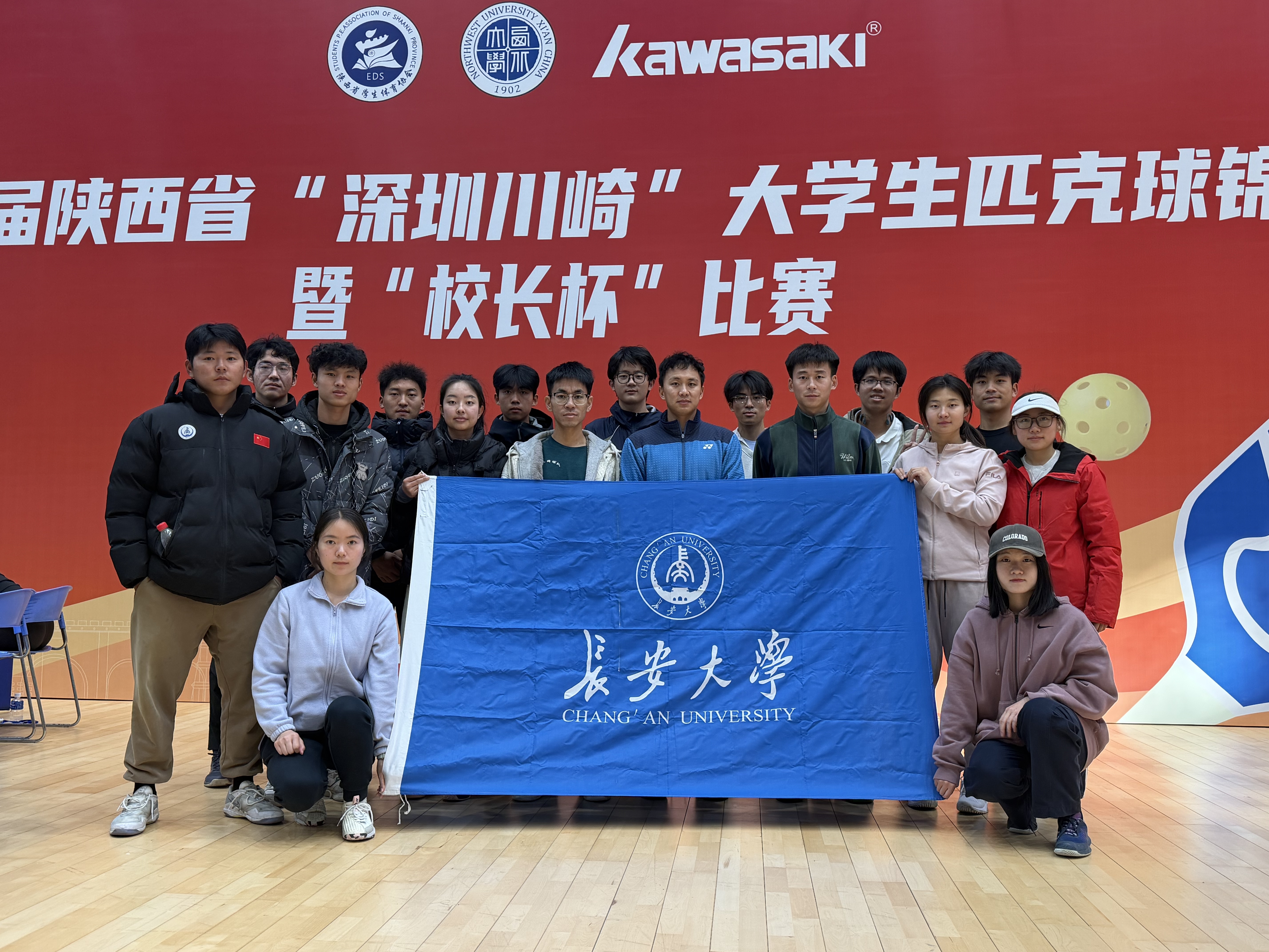 2026年1月7日至1月11日,由陕西省学生体育协会主办、西北大学承办的第二届陕西省深圳川崎大学生匹克球锦标赛暨校长杯比赛火热开赛。来自全省38所高校的500余名运动员集结赛场,我校代表队在体育部(系)主任杭兰平、主教练黄一平及刘泳江老师的带领下,凭借扎实的体能与技术训练,展现出优秀的竞技水平与顽强的拼搏精神,在多个组别中取得突破,最终收获男子甲组团体铜牌、黄一平与刘泳江老师组成的园丁组双打铜牌,以及女子甲组团体第五名、甲组混合双打第五名、男子丙组团体第五名、王松坡同学获得丙组单打第五名的优异成绩,共计斩获两项铜牌、四项第五名。
