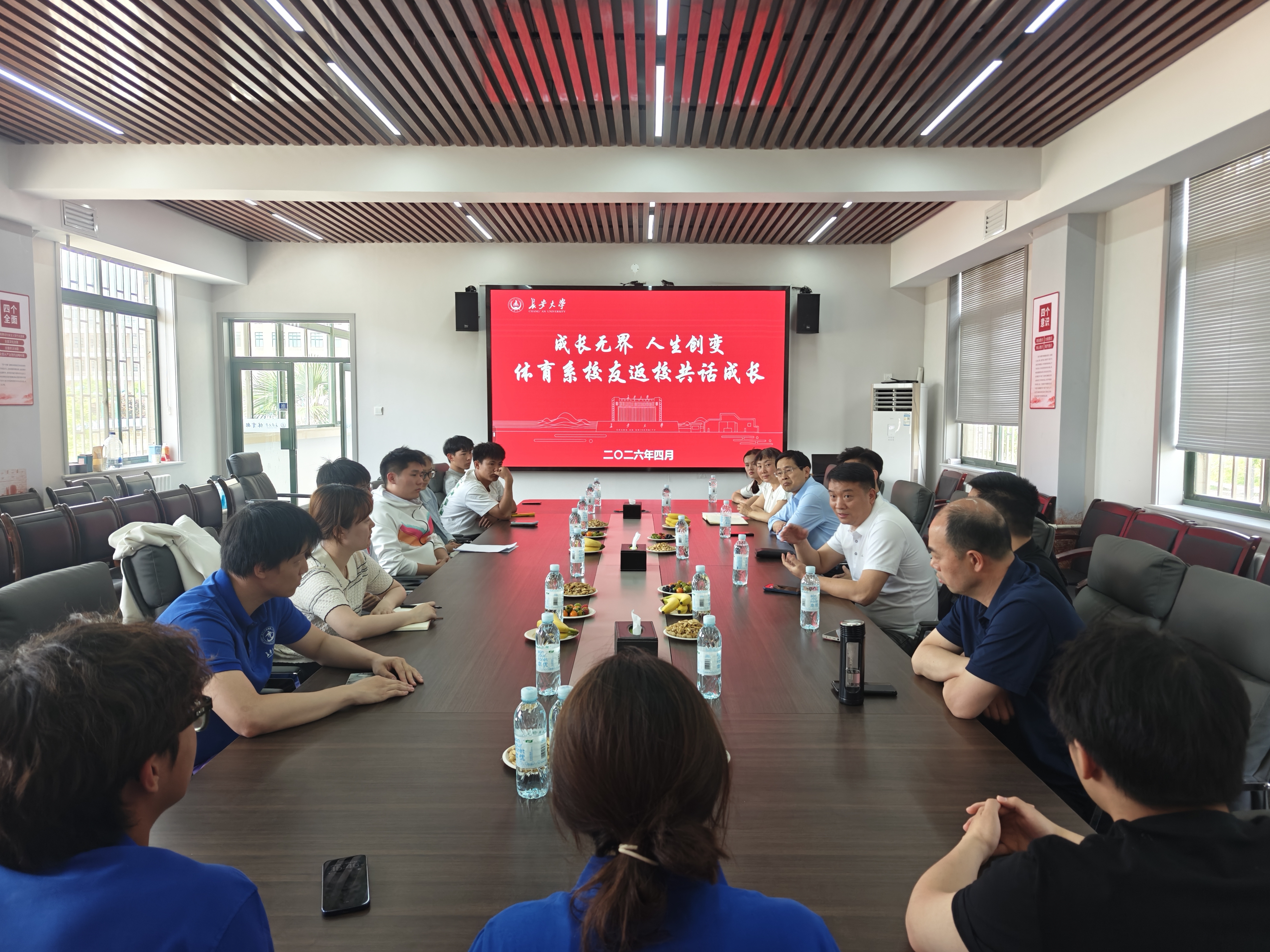 4月18日下午,体育系在体育部二楼会议室举行“成长无界·人生创变”校友座谈会。体育系党总支书记唐少君,副书记张侠,体育部副主任米战与校友代表、本科生及研究生代表齐聚一堂,共叙成长历程,共话创业梦想。会议由系党总支副书记张侠主持。